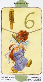 На рисунке мы видим увлеченную кропотливой работой Гномиху. Аркан призывает нас отдаваться своим творческим увлечениям, развивать способности детей, вкладывать душу в общение с ними. Обещает успех и радость от усердного развития своих талантов. Созвучно с Луной в четвертом Доме, Аркан призывает кропотливо работать над отношениями с любимыми. Забота окупится сторицей.